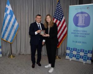 Drejtuesi i Prokurorisë së Posaçme z. Altin Dumani, po merr pjesë në Konferencën Ndërkombëtare në Luftën kundër Drogave, e cila po zhvillohet në Athinë, Greqi nga datat 24-26 Shtator 2024. Gjatë këtij aktiviteti z. Altin Dumani zhvilloi një takim shumë konstruktiv me Administratoren e DEA-s, zj. Anne Milgram.